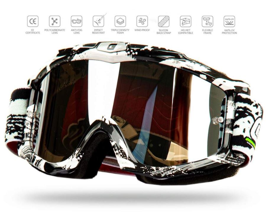-Очки Мотокросс GTX 5021 бело/черные (двойное стекло)